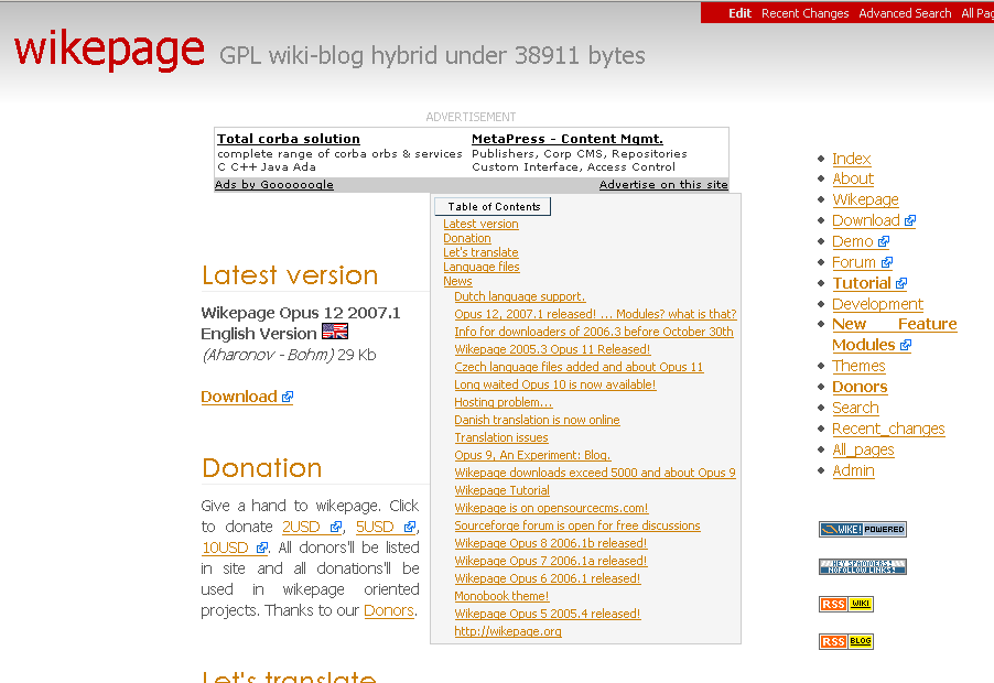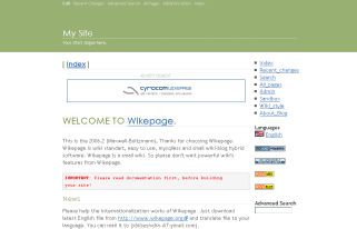 Wikepage is a 34Kb of flatfile wiki - blog hybrid with RSS import/export feature. You can enter blog entries with a wiki commands like wiki pages and you can view your blog in any of your wiki pages. It's easy as wiki and it's useful as blog.